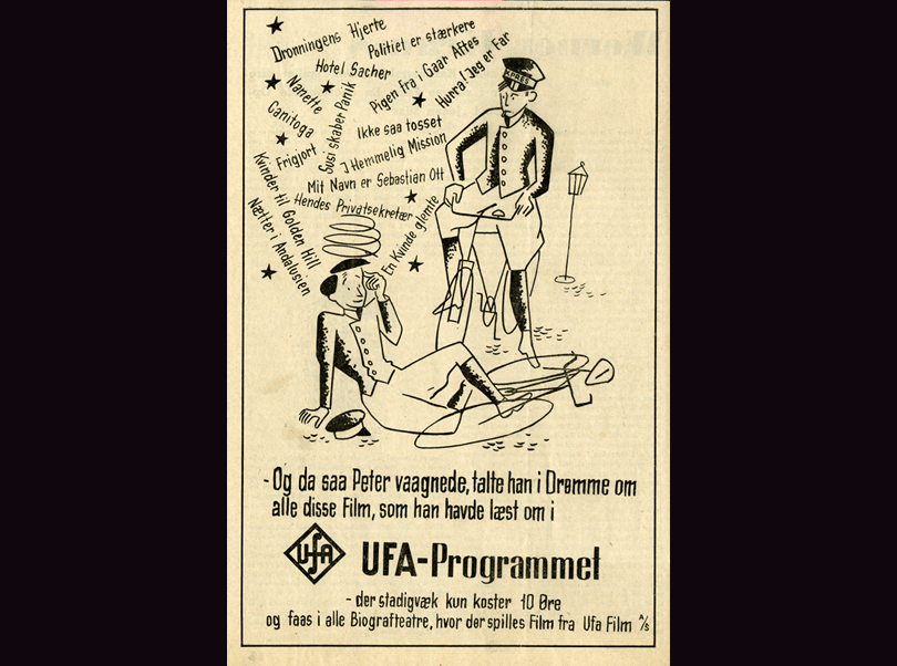 Hermed gav Ufa biografpublikummet lejlighed til at reflektere over forholdet mellem filmkritikkens omtale og deres egen oplevelse. Det ligger ligefor at tolke det som et forsøg at drive en kile ind mellem publikum og uvenlige kritikere, noget der ikke lå von Hake fjernt. Under Ufa’s første kongres i 1941 ironiserede Ufa-direktøren over, at det gik godt for tysk film i Danmark, selvom ”kloge Mennesker” blandt danskerne forfægtede det modsatte (Sørensen 2014: 164). Så med det nye og udvidede program, som Ufa lancerer samtidig med åbningen af filialen i Nygade, følger altså dette lille trick, der kunne bringe uoverensstemmelser mellem biografpublikummet og filmkritikerne frem i lyset.