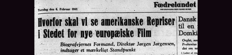 Således mærker man også ”Tidspræget” i FILMs spalter, selvom livtaget med truslen fra Tyskland udelukkende tages i spredte referencer. Og der er – her i forårsmånederne inden invasionen den 9. april – intet, der forvarsler, at FILM skal ende som en renlivet propagandakanal for tysk film. Tværtimod. Går man kvantitativt til værks og sammenligner emnevalget i bladets større artikler, dvs. artikler, der fylder en halv side eller mere, i de første fem numre med de sidste fem, får man et tydeligt billede af forandringen. Der er slet ingen artikler om tysk film i de første fem numre, artikelstoffet omhandler udelukkende dansk, engelsk og amerikansk film. I de sidste fem numre handler 26 større artikler om tysk film, kun to kan siges at handle om amerikansk film, hvoraf den ene er decideret anti-amerikansk, tre artikler omtaler amerikanske film en passant, 10 artikler har danske film og filmforhold som hovedemne. Så vidt tallenes tale. Ét tal mere, som det havde været rart at kende, nemlig FILMs oplagstal, lader sig desværre ikke grave frem [1].