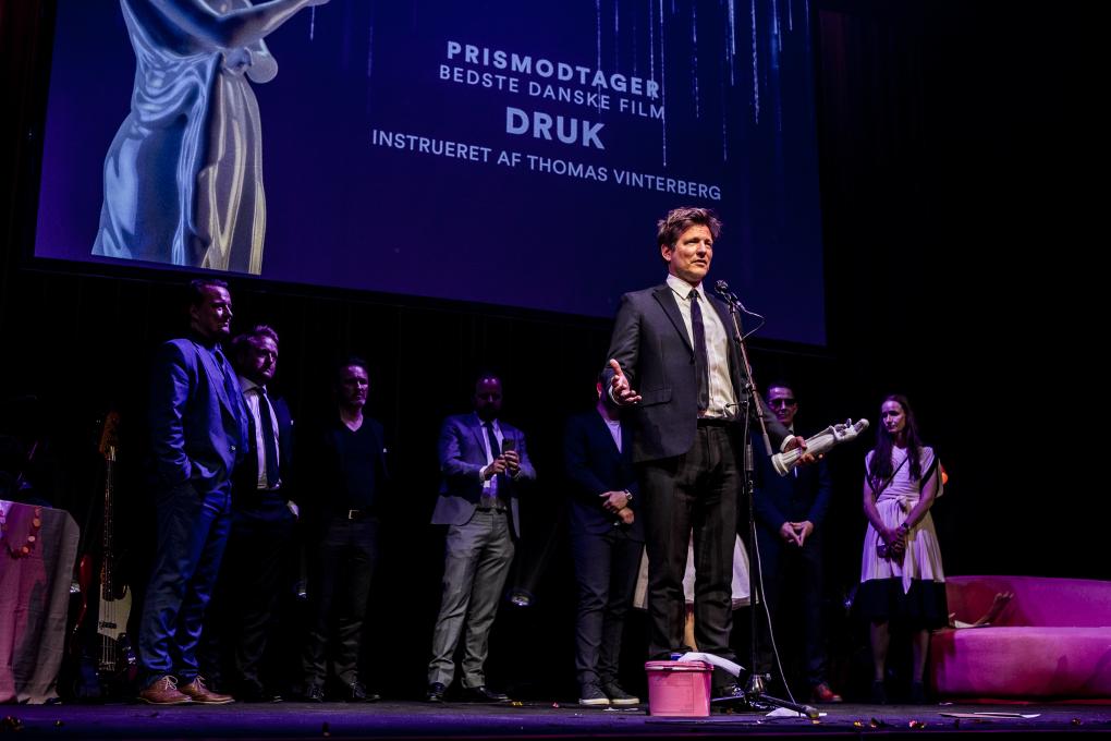 Thomas Vinterbergs 'Druk' blev aftenens store vinder med hele tre priser for bedste film, bedste mandlige hovedrolle (Mads Mikkelsen) og bedste manuskript.