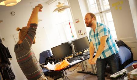 "Vores ambition er ikke at vækste så meget. Jeg har det fint med, at vi er 10 ansatte. Vi skal ikke lave en 200-mand stor virksomhed, for vores branche er helt anderledes, end den var for fem år siden. I dag er det små hold, der kan omstille sig hurtigt og være kreative, som overlever. 'Angry Birds' (finsk iPhone-spil, der har solgt mere end 700 millioner eksemplarer, red.) blev for eksempel lavet af et hold på cirka 10-20 mand og kostede ikke særligt mange penge. Man kan sagtens have skyhøje ambitioner, og det har vi, uden at drømme om at vokse sig kæmpestore."