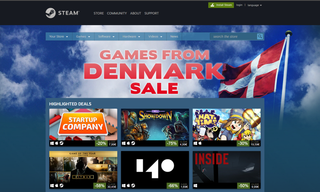 Siden tirsdag aften har Steams mere end 150 mio. brugere haft adgang til gode tilbud fra Danmark med udsalget "Games from Denmark". Initiativet er sat på benene af det aalborgensiske spiludviklingsfirma Bedtime Digital Games, som bl.a. står bag spillet ”Figment”, der er støttet af DFI/Spilordningen.
